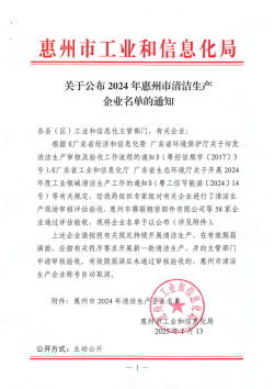 根據(jù)最新公布的2024年惠州市清潔生產(chǎn)企業(yè)名單,惠州水務集團碧源環(huán)境科技有限公司所屬污泥企業(yè)惠州民亨環(huán)??萍加邢薰卷樌ㄟ^評估驗收。