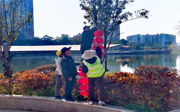 本次活動主要對“兩江一河”、望江瀝、大湖溪瀝、新開河、青年河、金山河、激流坑等管護(hù)項(xiàng)目進(jìn)行美化裝扮,現(xiàn)場管護(hù)人員利用彩燈、燈籠、中國結(jié)等裝飾元素,對河道景觀公園設(shè)置了多處新春主題景觀小品。當(dāng)夜幕降臨時(shí),彩燈璀璨,燈籠高掛,增添了濃厚的節(jié)日氣氛。